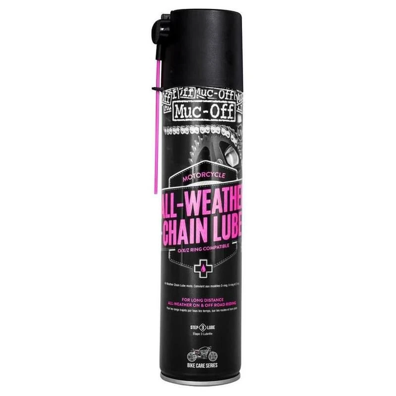 Als je het hele jaar rond rijdt en een echte kilometervreter bent kan je motor wel wat extra aandacht gebruiken. Helemaal de slijtgevoelige motorketting. Na jaren van ontwikkeling is Muc-Off All-Weather Chain Lube de meest effectieve kettingspray met langdurige bescherming. Bovendien wordt de wrijving van de ketting geminimaliseerd wat tevens resulteert in vermogenswinst.