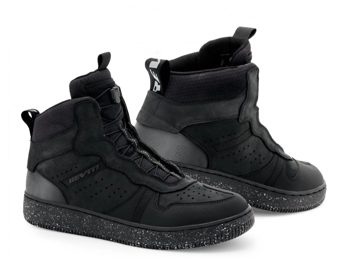 De REV’IT! Cayman motorschoen laat duidelijk zien dat de grenzen tussen streetwear en motorkleding langzaam met elkaar verkleefd raken. Deze hightops, hoe casual ze ook mogen ogen, zijn voorzien van serieuze hardware om comfort en bescherming te waarborgen. Een geperforeerd Nubuck lederen buitenlaag tesamen met het welbekende ripstop vormen de slijtvaste laag waaronder de versterkingen op de teen hiel en enkels zich huisvesten. Duurzaamheid begint ook steeds verder naar voren te schuifelen binnen het merk en komt in de Cayman naar voren in de vorm van een volledig gerecyclede zool. Al met al de aangewezen schoen voor de modebewuste urban rijder.