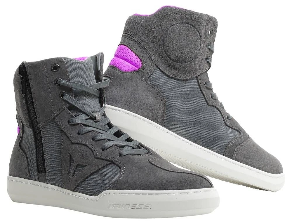 De Dainese Metropolis Lady motorsneaker weet jou op een stijlverantwoorde manier beschermd door de stad te begeleiden. Deze motorsneaker is opgebouwd uit suède dat met canvas is afgewisseld. Hierdoor weten de Italianen een opvallend en onderscheidend design neer te zetten. Combineer de Metropolis Lady D-WP sneaker met een motorjeans voor jouw ‘on point’ casual motoroutfit.